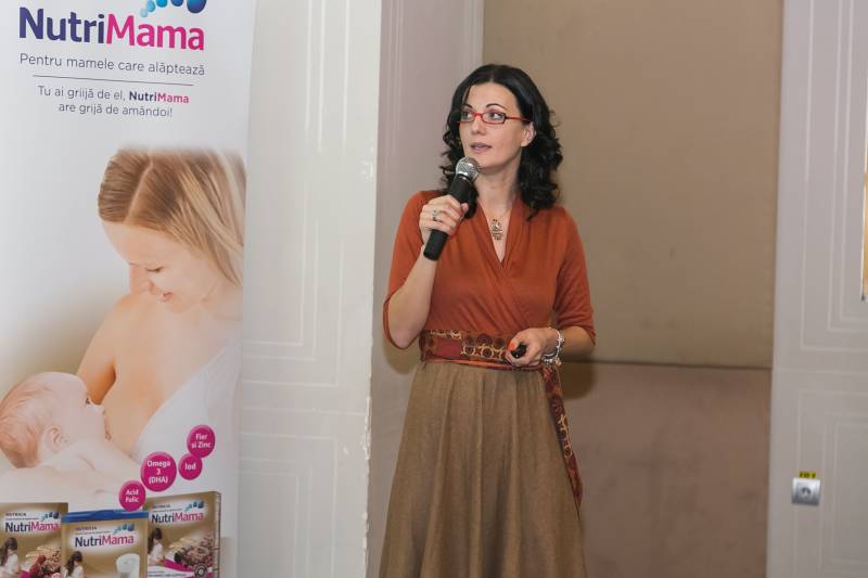 Tot în cadrul conferinţei, Cornelia Păun Grigore, medic de familie, a abordat o temă la fel de importantă pentru viitoarele mame – alăptarea, România fiind una din ţările cu cea mai mică rată de alăptare exclusivă până la vârsta de 6 luni din Europa, de doar 12.6%. Medicul şi-a axat discursul pe prezentarea rezultatelor studiului MAMA, primul şi singurul studiu cu privire la nutriţia mamei care alăptează în România.