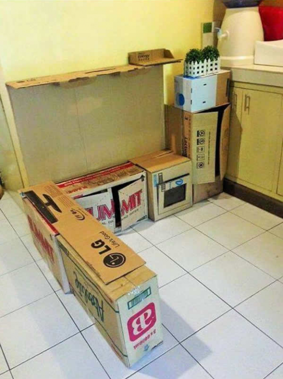 Așa a fost și cazul acestei mame, care, fie că suntem capabili să credem, fie nu, este în stare să ajungă până la capătul lumii pentru a primi din partea fiicei sale un zâmbet de mulțumire. A optat pentru amenajarea unei bucătării pentru fiica sa, realizată din cutii de carton și folosindu-se de multă inspirație.